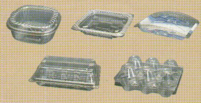 真空成形により生産されたプラスチック容器は、成形時には多数の製品が1枚のシート